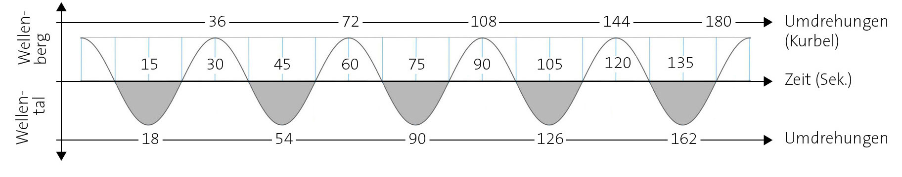 Das beste Ergebnis erzielen wir, wenn es in einer Minute zu 72 Umdrehungen kommt (oder entsprechend in 45 Sekunden zu 54, in 30 Sekunden zu 36, in 15 Sekunden zu 18 Umdrehungen).